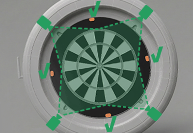 - Ensure your number ring is attached using all of the Heylo's hooks correctly. There should be some space between the dart board and the number ring.